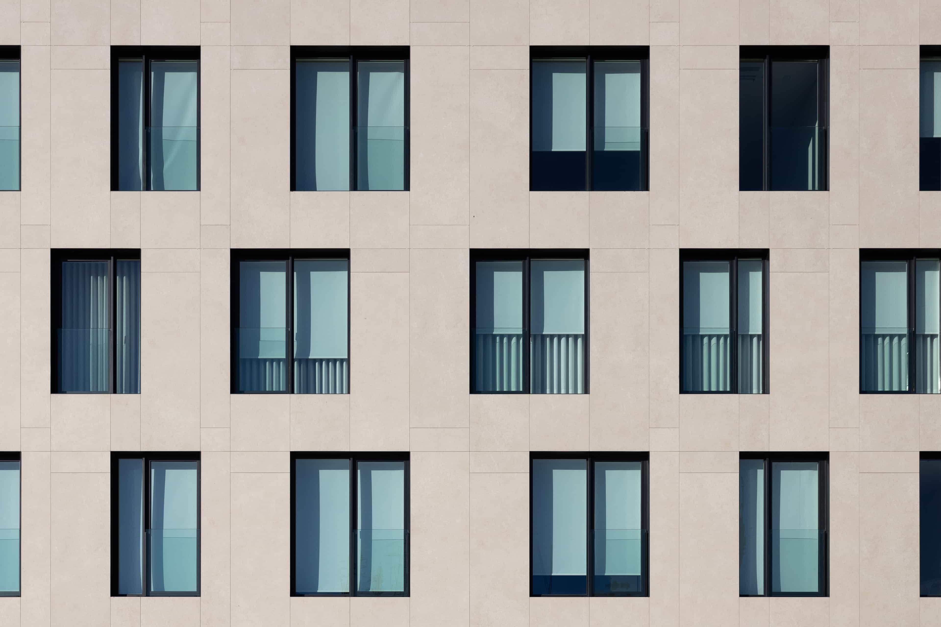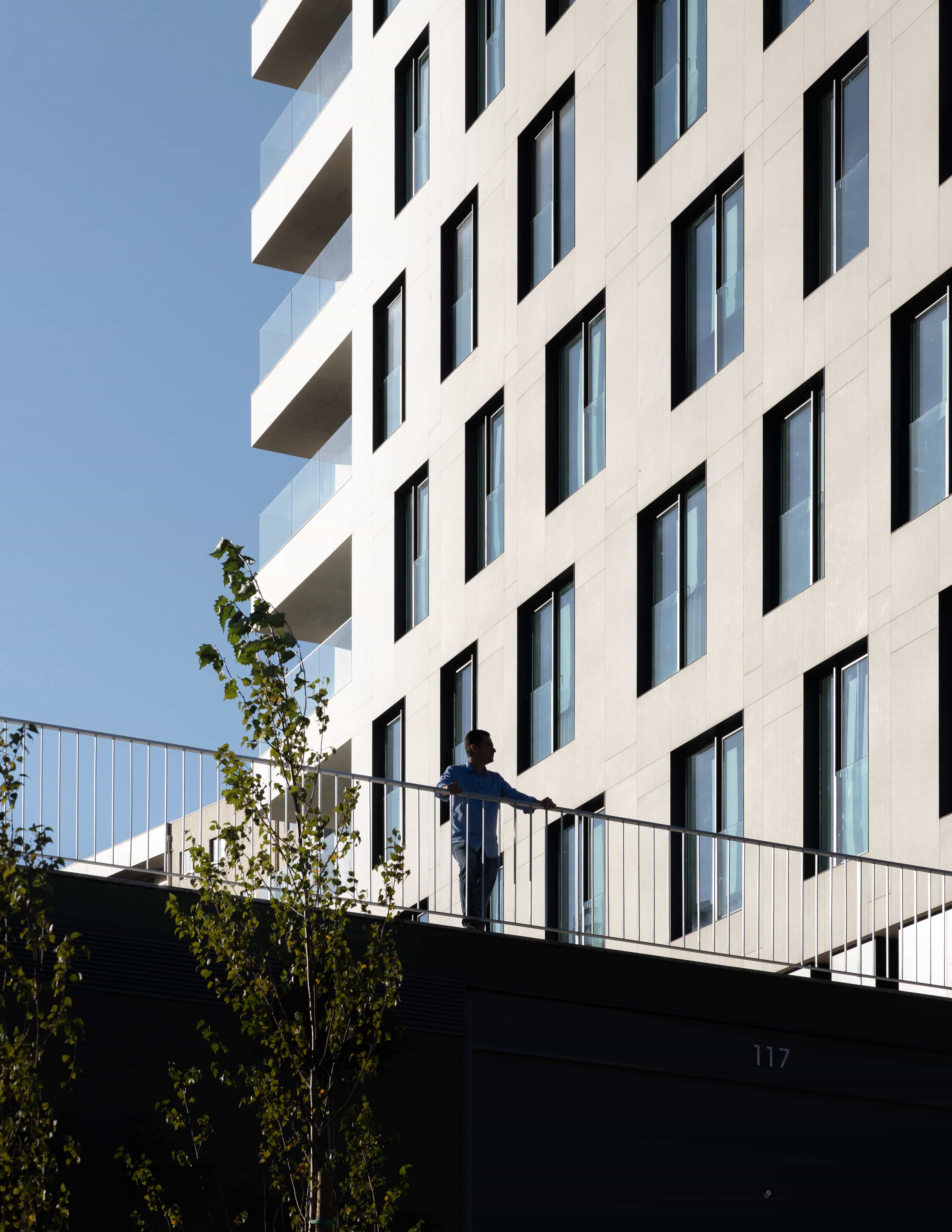 One of the key design elements is the careful positioning of balconies as a setback in the corners of the building. This intentional placement serves a dual purpose. Firstly, it ensures the residents' comfort by protecting the balconies from overheating, thus creating inviting outdoor spaces. Secondly, it adds an aesthetic appeal to the façade, breaking the monolithic look and offering a dynamic interplay of light and shadow.