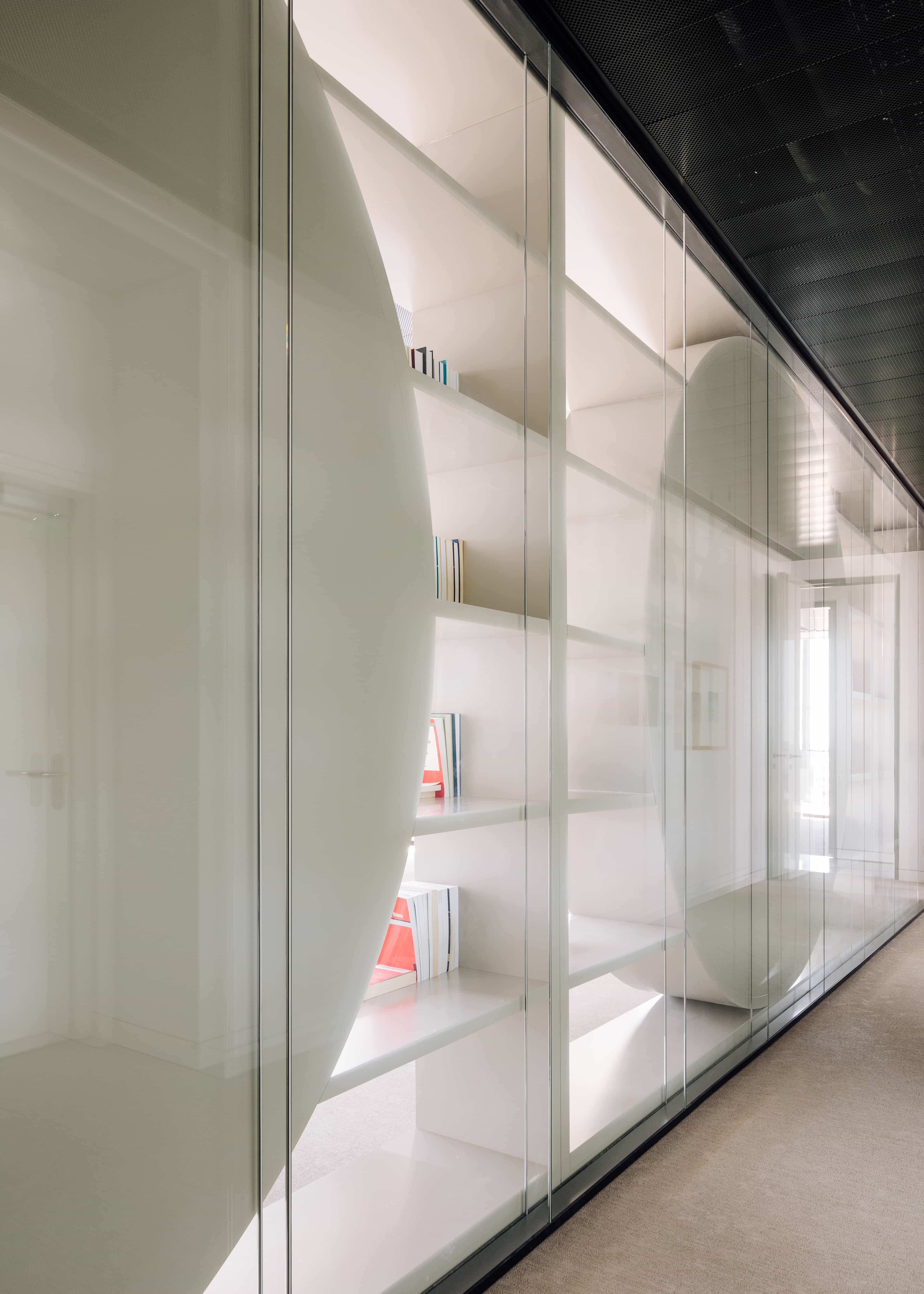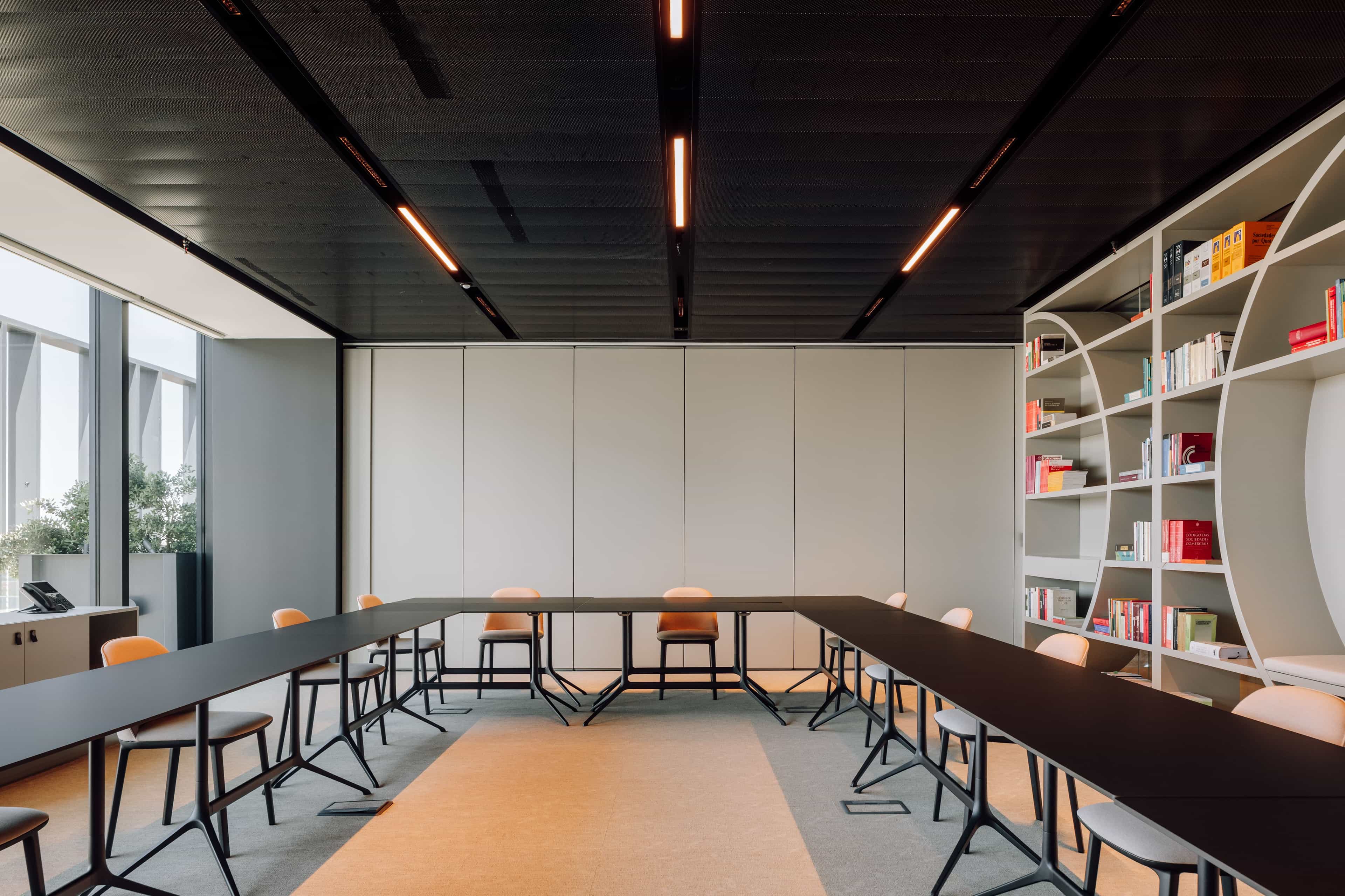 There is also a library space and meeting rooms interconnected through sliding panels that adapt to different needs on this floor.